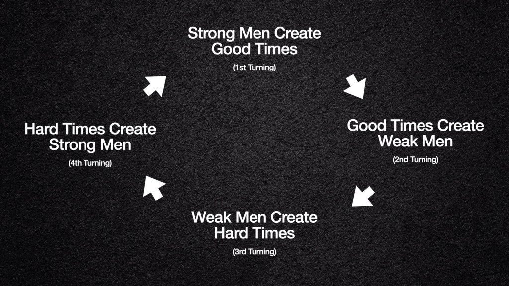 We are now entering the fourth turning known as The Crisis. It’s a societal winter where things are dark and cold, but each day is longer, with more sunlight, than the day before.